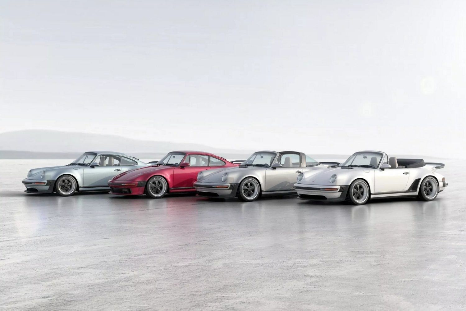 Afin de célébrer en grande pompe le 50e anniversaire de la Porsche 911, le préparateur nord-américain Singer a entrepris de recréer les variantes Coupé, Targa, Cabriolet et Slantnose Coupé du modèle 930 Turbo.