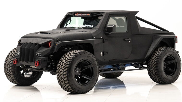 C’est le Soflo Speedster, un Jeep Wrangler modifié et haché créé par la boutique de tuning basée en Floride Soflo Customs, et si nous étions vous, nous lui donnerions une large couchette, car elle a l’air un peu vexée sur quelque chose.