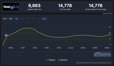 C’est un peu en retrait par rapport à l’autre grand jeu de course à accès anticipé de janvier, Assetto Corsa Evo, qui a culminé à 25 752 joueurs le jour de sa sortie. Considérez cependant que TXR est en fait un titre indépendant, auto-édité par Genki, et constitue la première sortie européenne depuis Import Tuner Challenge de 2006 dans une franchise qui a toujours été un acteur de niche en dehors du Japon, et c’est une réalisation extrêmement impressionnante.
